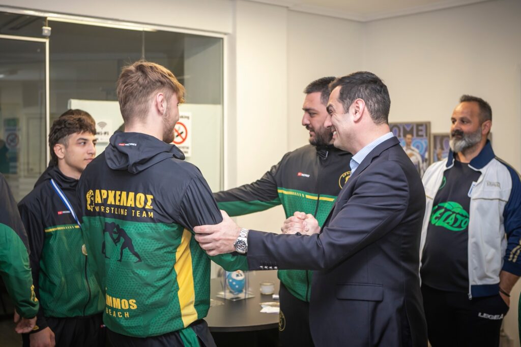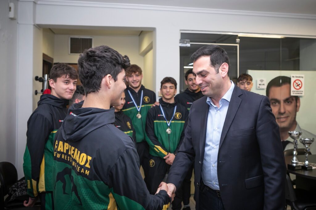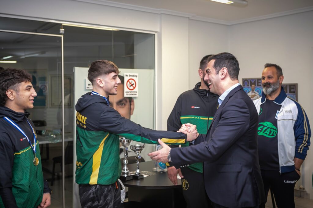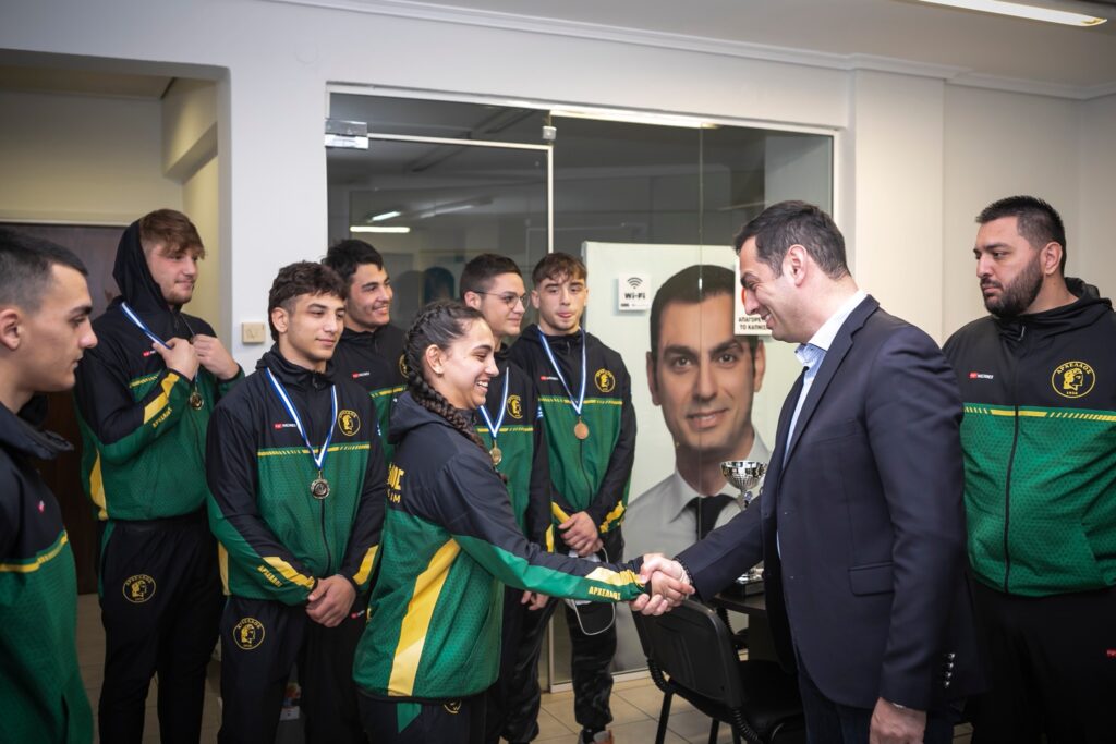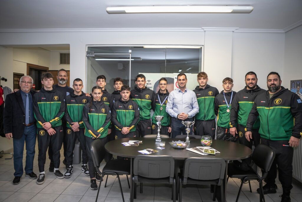 Τις αθλήτριες, τους αθλητές που πέτυχαν σπουδαίες διακρίσεις στο Πανελλήνιο Πρωτάθλημα Πάλης Παίδων U17 στην Ηλεία υποδέχθηκε στο γραφείο του ο υποψήφιος βουλευτής Πιερίας της Ν.Δ. Σπύρος Κουλκουδίνας. Την αποστολή συνόδευσαν ο Πρόεδρος του Αρχελάου Κατερίνης Αλκίνοος Τασόπουλος, ο Έφορος Πάλης Κυριάκος Κωνσταντινίδης και οι προπονητές Τσεντίδης Σάββας και Ταμός Κώστας.